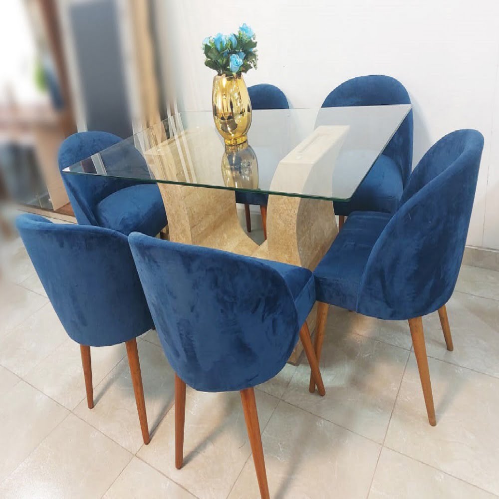 Juego De Comedor Mármol 6 Sillas Vintage – Azul